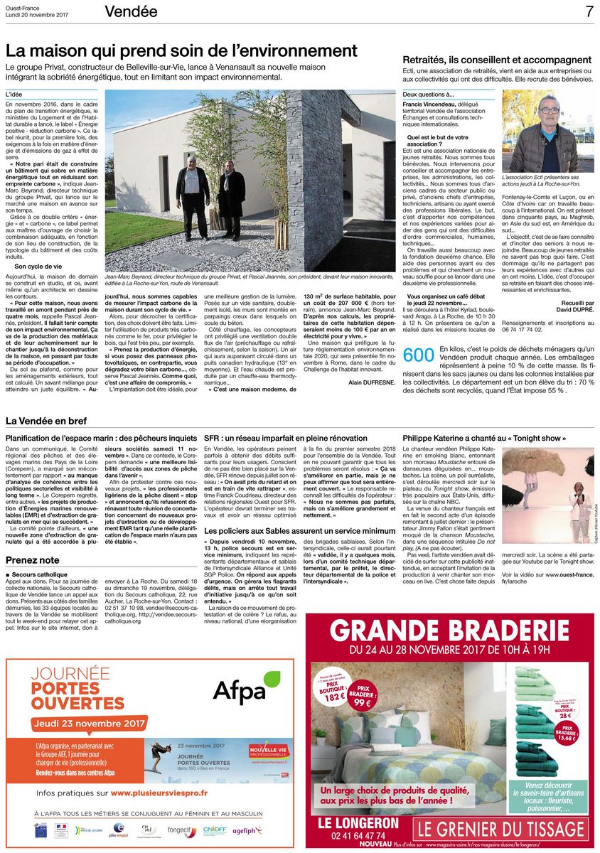 Le groupe Privat, constructeur de Belleville-sur-Vie, lance à Venansault sa nouvelle maison intégrant la sobriété énergétique,tout en limitant son impact environnemental.